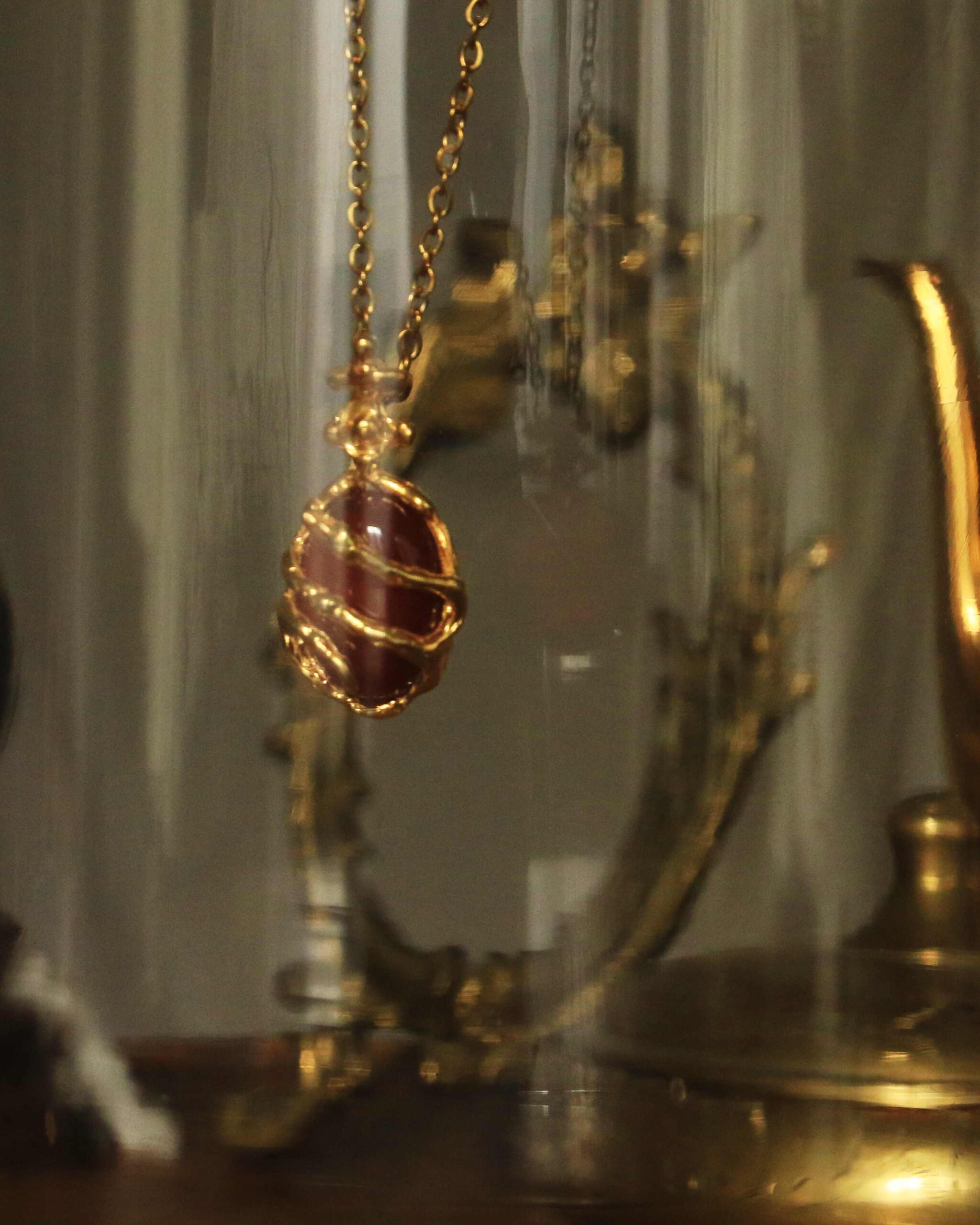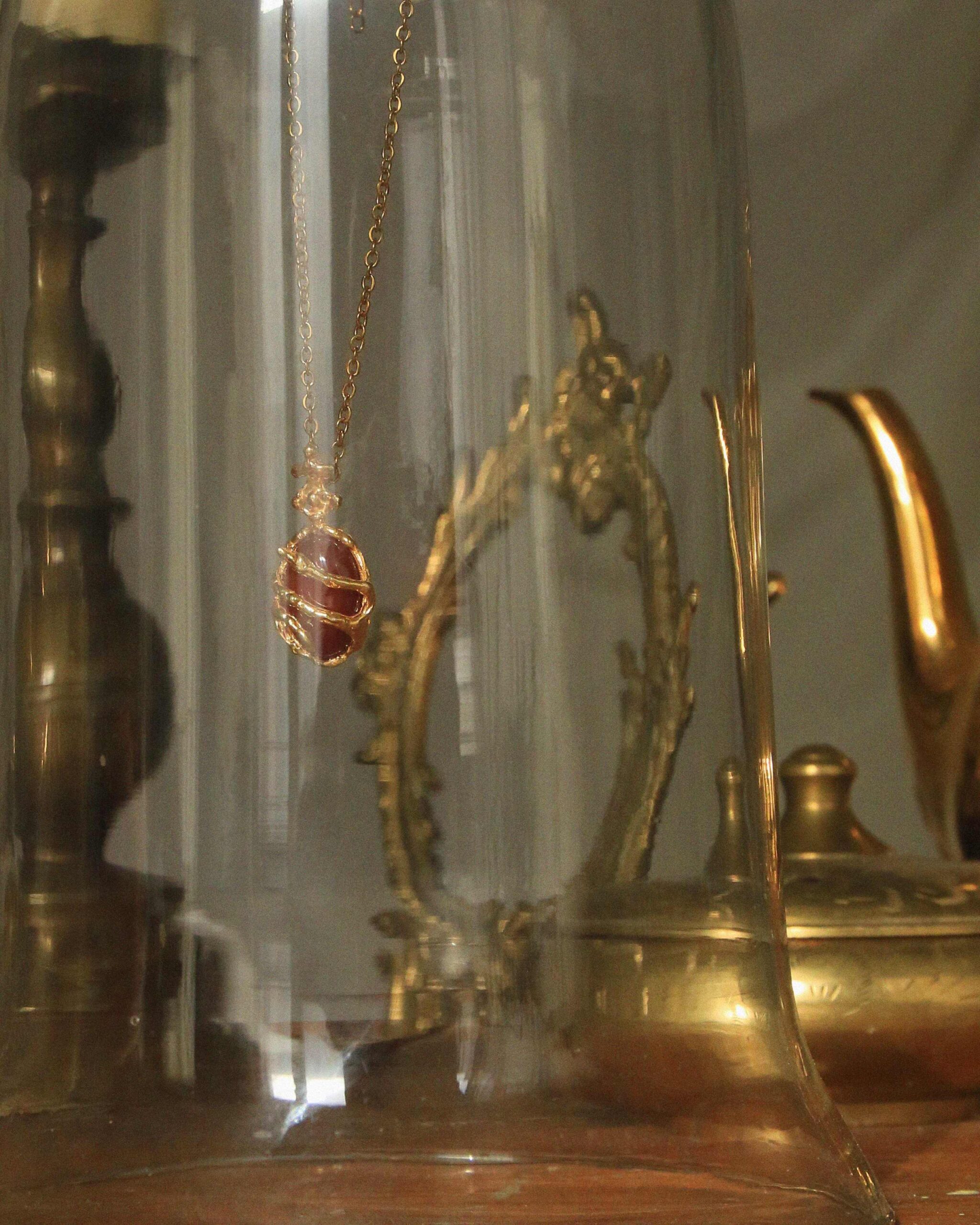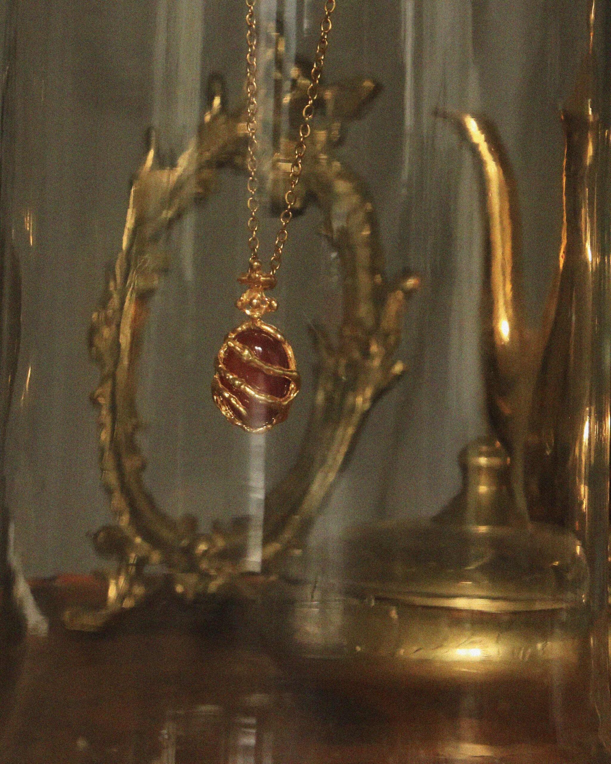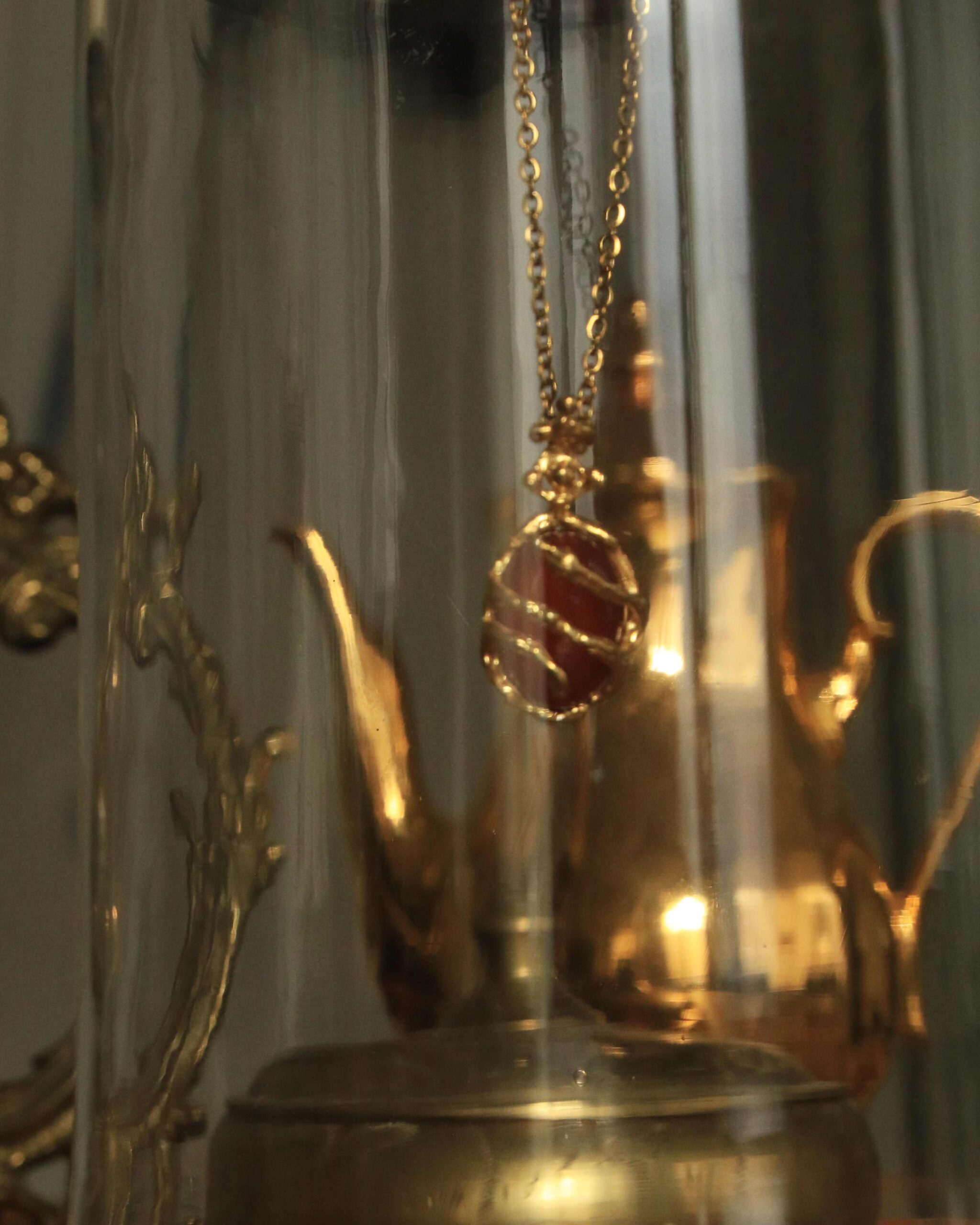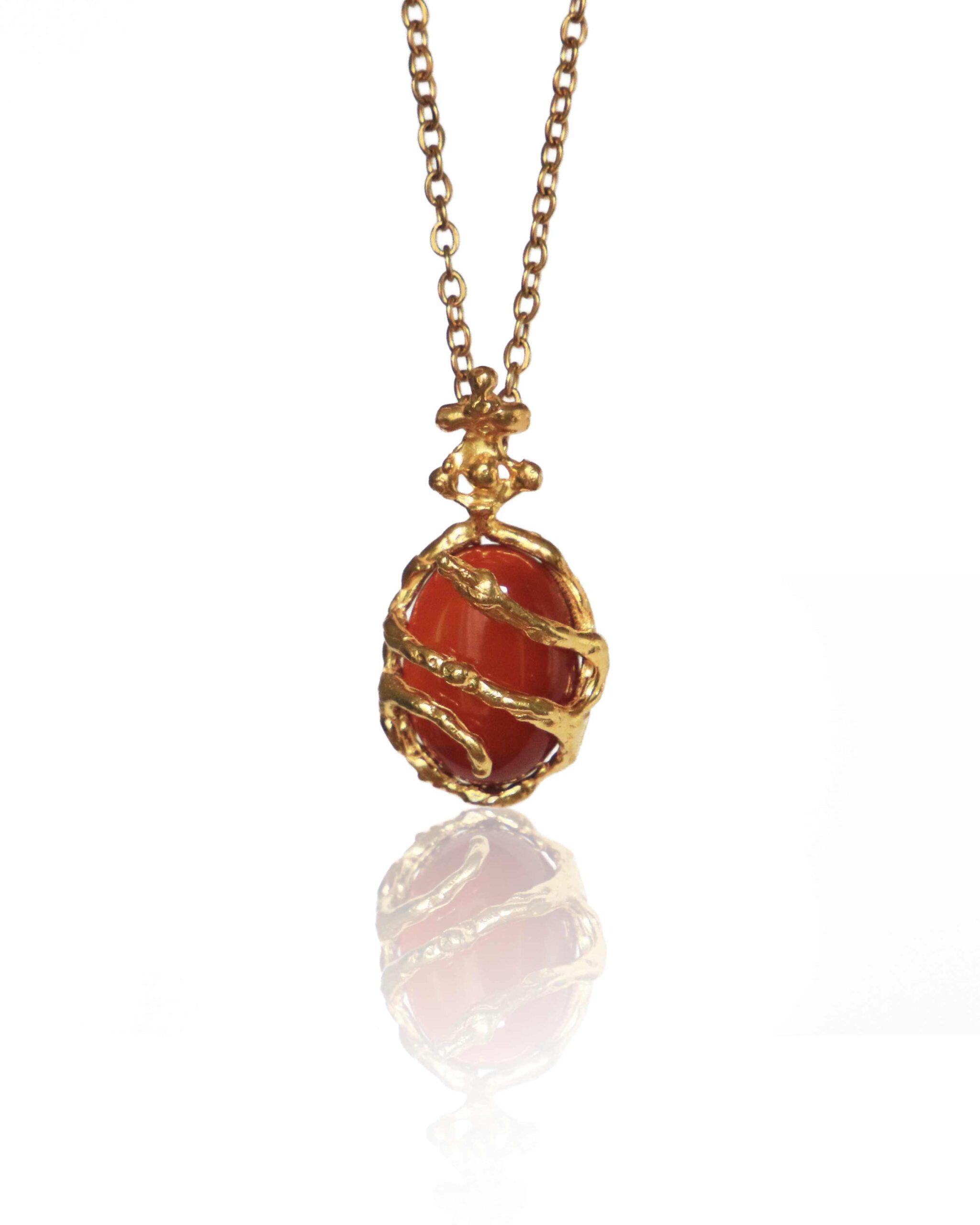Ręcznie wykonany amulet ze złoconego srebra skrywa w sobie karneol – kamień odwagi i działania