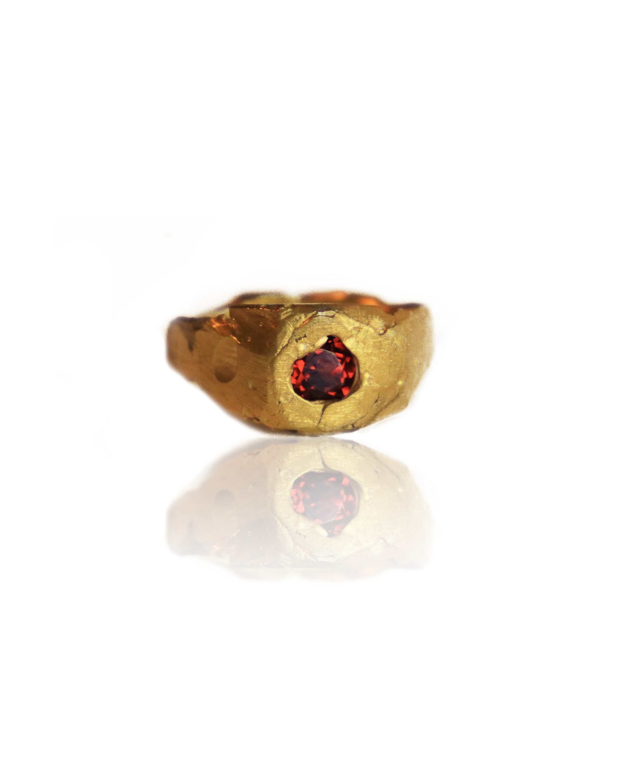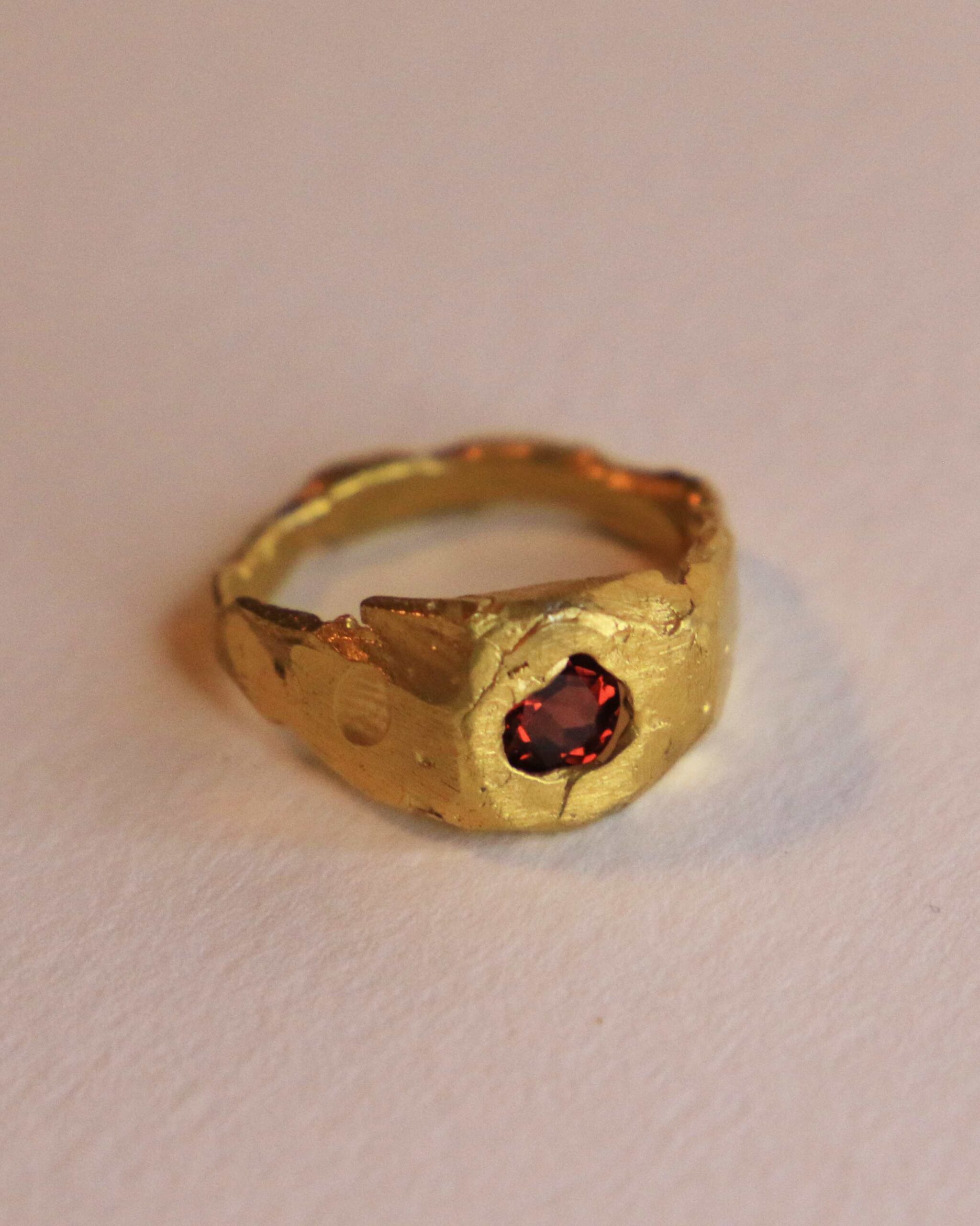 Forma pierścienia jest niemal organiczna, jakby wyłoniona z samego wnętrza ziemi — nieregularna, mocna, ciepła.