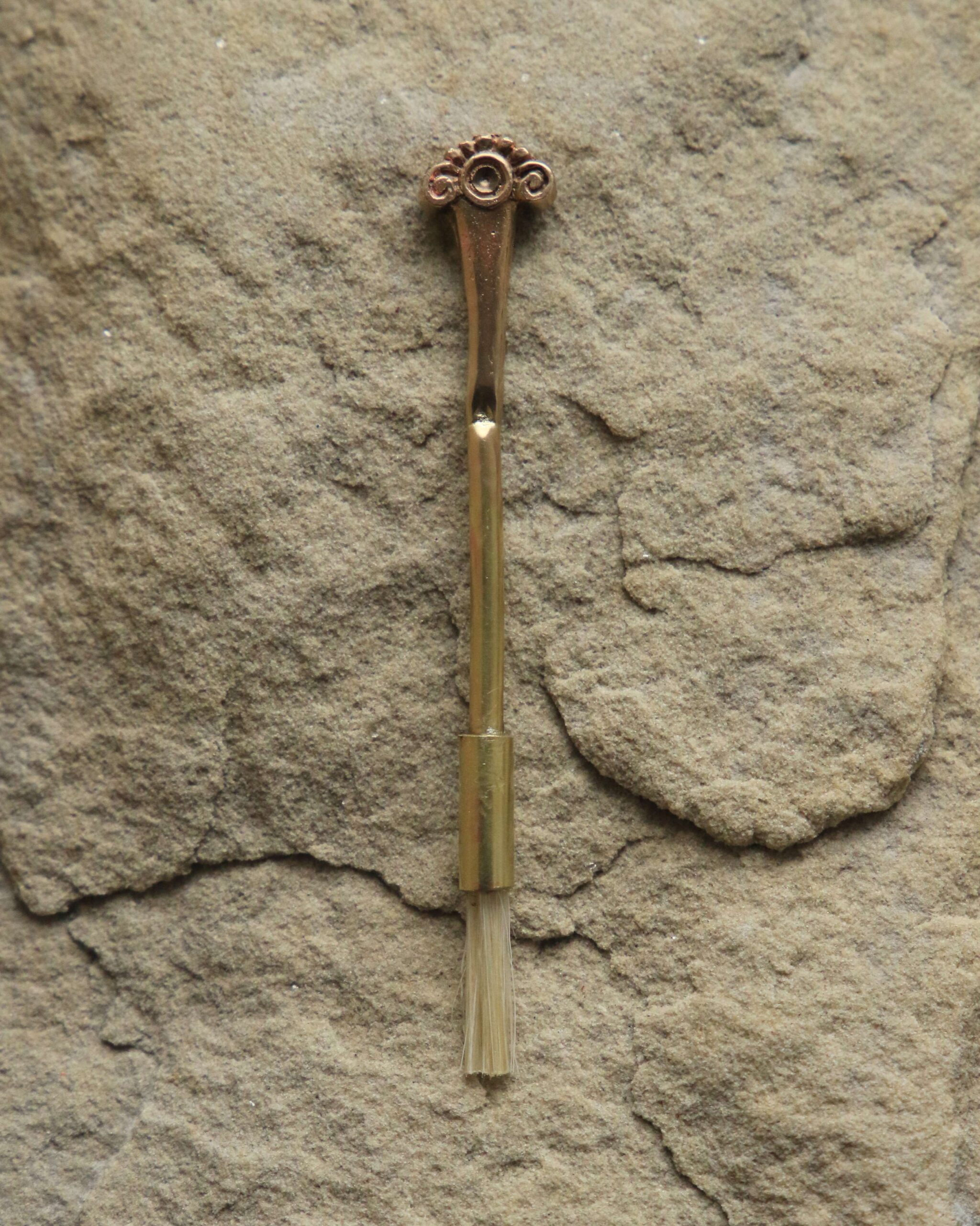 Do tego pierścienia dołączony jest ręcznie wykonany pędzelek z mosiądzu, stworzony, aby umożliwić precyzyjne i uważne aplikowanie olejku lub perfum.