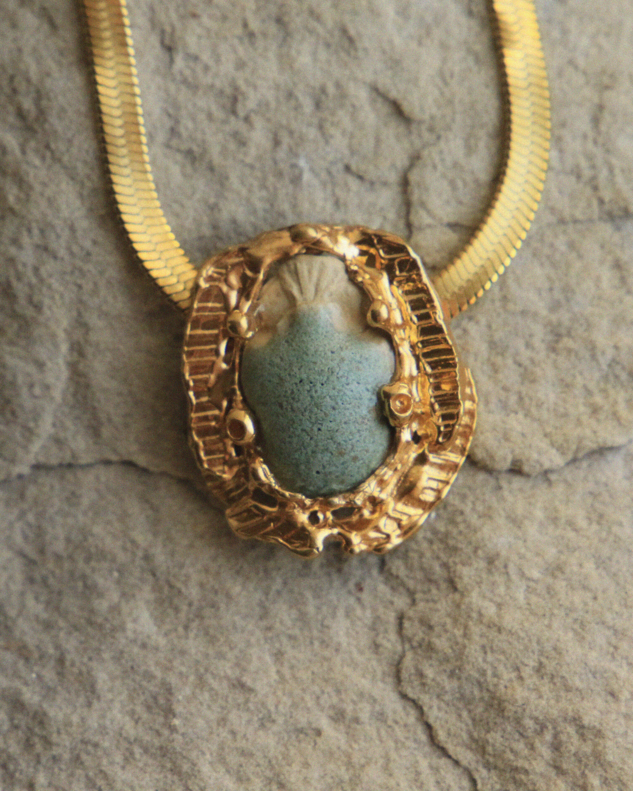 ten naszyjnik niesie w sobie jeden z zapachów obecnych na tej ekspozycji.